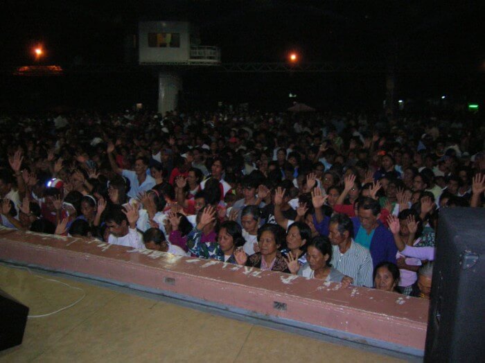 Every night an outdoor Crusade meeting was held in the stadium and Jim would preach the Word of the Lord. Then I would lead the Prayer of Salvation. The soldiers estimate 5,000 people on the first night and increasing up to 10,000 on the last night. Over the 4 nights, it was estimated that 30,000 people were reached with the gospel and thousands and thousands were saved and healed. In the Philippines, the people rush to the Altar - it is harvest time in the Philippines. Amen.