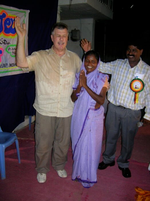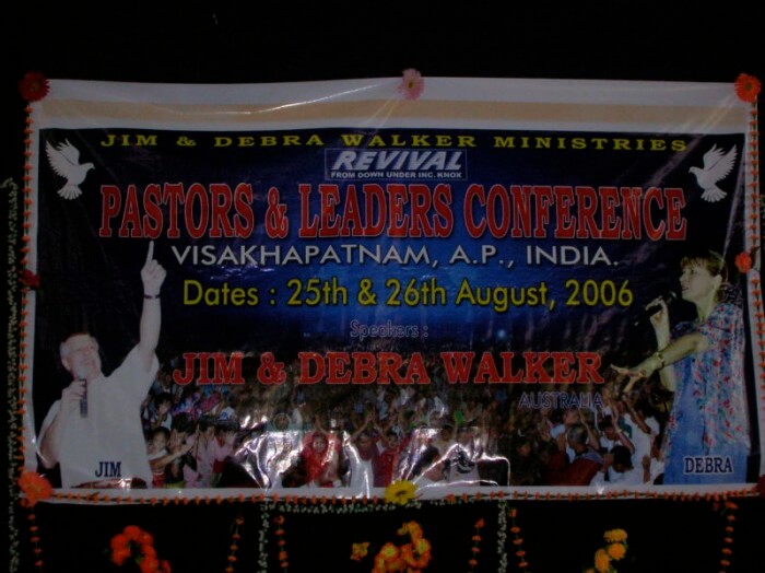 The testimony from Victoria Sekhar was that 18 months ago the Lord had given her a picture of a man's face during her time of prayer. Then six months ago, the Lord told her about a man of "Melbourne". She asked her husband "What is Melbourne?" Chandra replied that the only Melbourne he knew of was went watching the cricket of India vs Australia, it was held at a place called Melbourne. They looked up the internet and found our website and Victoria was amazed because Jim's picture on the website was the same at the man's face that she had seen in her prayer time. They then contacted us early in 2006 to request we visit India. This is a connection orchestrated by the Lord.
