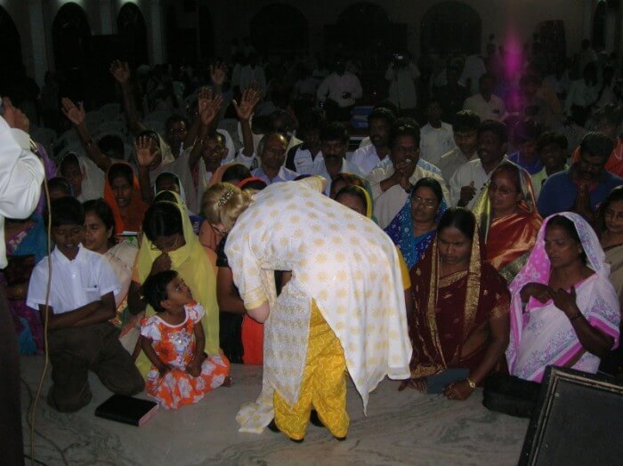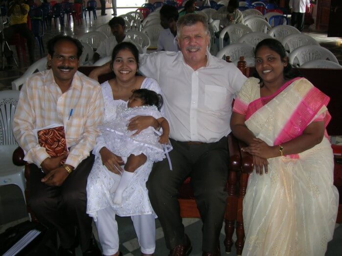 When we visited their local Church on the Sunday morning, we prayed for the worship team, and saw the Holy Spirit touch them with His anointing, and we prayed for about 70% of the people to be filled with the Holy Spirit. Jim also gave Ps Chandra and his team, the understanding about the name of the Godhead and correct water baptism. So following the Church service, Jim re-baptised Ps Chandra and his Assistant Pastor, Victor. Then we visited another Church of about 100 people and all the people desired to be filled with the Holy Spirit. They (including children) were filled with the evidence of speaking in tongues and one lady prophesied in tongues and interpreted. Then we dedicated a small village Church where Jim preached a salvation message and about 60 people prayed the prayer of salvation. There were also others healings, with one man testifying that the Lord healed him of tuberculosis. We also distributed rice to the widow ladies and blessed them each with some rupees. Lives were changed forever!