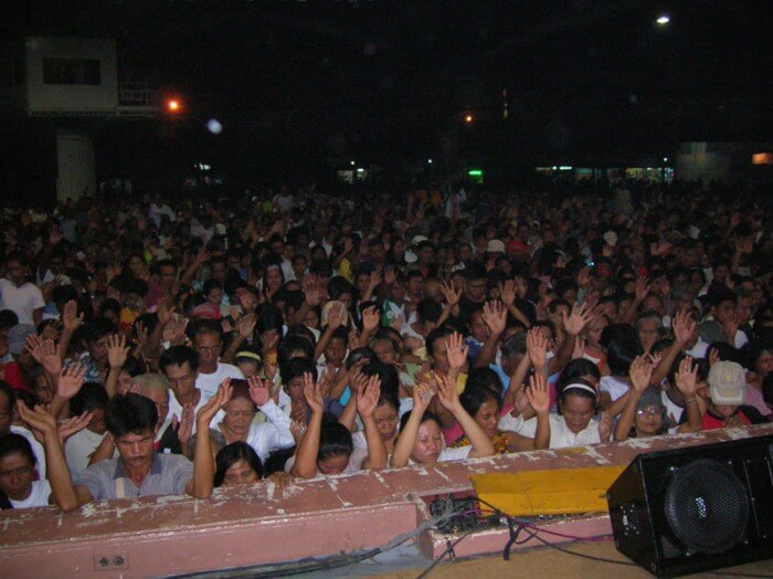 Every night an outdoor Crusade meeting was held in the stadium and Jim would preach the Word of the Lord. Then I would lead the Prayer of Salvation. The soldiers estimate 5,000 people on the first night and increasing up to 10,000 on the last night. Over the 4 nights, it was estimated that 30,000 people were reached with the gospel and thousands and thousands were saved and healed. In the Philippines, the people rush to the Altar - it is harvest time in the Philippines. Amen.