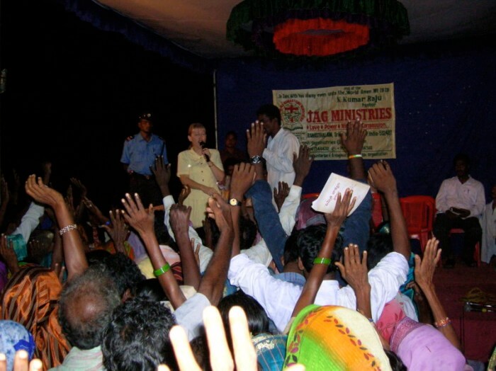 Early in 2006 we received invitations from various Pastors to visit India. We replied that together let us seek the Lord for his will, timing and provision. Needless to say, the Indian people stormed heaven, fasted and prayed and the Lord made a way whereby some dear friends in obedience to the Lords direction, forwarded monies to us, so a financial way was made. Praise the Lord.