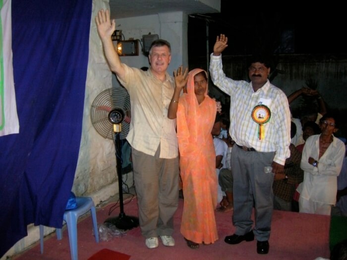 The testimony from Victoria Sekhar was that 18 months ago the Lord had given her a picture of a man's face during her time of prayer. Then six months ago, the Lord told her about a man of "Melbourne". She asked her husband "What is Melbourne?" Chandra replied that the only Melbourne he knew of was went watching the cricket of India vs Australia, it was held at a place called Melbourne. They looked up the internet and found our website and Victoria was amazed because Jim's picture on the website was the same at the man's face that she had seen in her prayer time. They then contacted us early in 2006 to request we visit India. This is a connection orchestrated by the Lord.