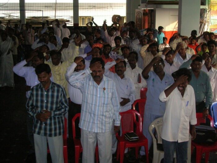 Pastors & Leaders Conference, RajamPastors & Leaders Conference, RajamPastors laying hands on themselves and believing for healingStomach Pain – 1 month