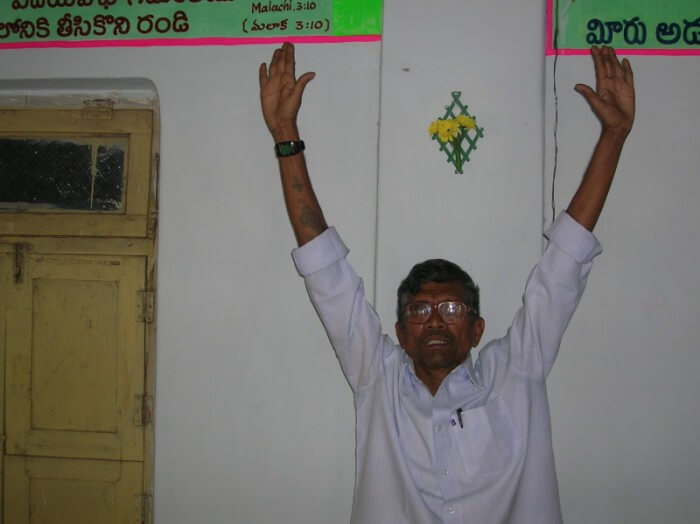 When we visited their local Church on the Sunday morning, we prayed for the worship team, and saw the Holy Spirit touch them with His anointing, and we prayed for about 70% of the people to be filled with the Holy Spirit. Jim also gave Ps Chandra and his team, the understanding about the name of the Godhead and correct water baptism. So following the Church service, Jim re-baptised Ps Chandra and his Assistant Pastor, Victor. Then we visited another Church of about 100 people and all the people desired to be filled with the Holy Spirit. They (including children) were filled with the evidence of speaking in tongues and one lady prophesied in tongues and interpreted. Then we dedicated a small village Church where Jim preached a salvation message and about 60 people prayed the prayer of salvation. There were also others healings, with one man testifying that the Lord healed him of tuberculosis. We also distributed rice to the widow ladies and blessed them each with some rupees. Lives were changed forever!