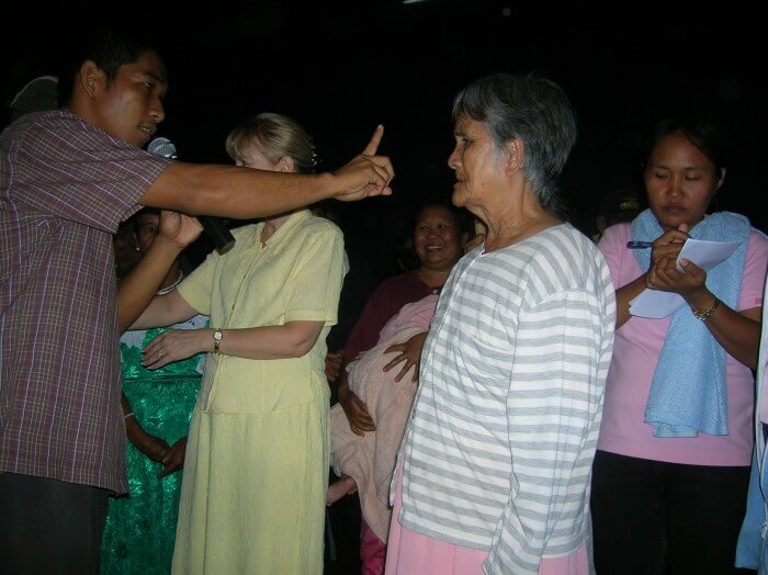 Some of the recorded testimonies were: One 10 year old young girl was born deaf and dumb. Jesus healed her, and she can now hear and speak. One old lady had no hearing, but Jesus healed her! She can now hear perfectly well. One man testified that the Lord had healed his diabetes. One lady's kidney problem was healed after suffering for 3 years. Another old lady had a cyst on her head for 16 years - healed! One lady's watery eyes for 5 years, healed. One young lady (about 19 years old), suffered a migraine from birth - healed. One lady's goitre of 10 years vanished! One man suffered for asthmatic for 7 years, can now breathe perfectly well. One man's two legs were numb for 1 year, so that he could not even bend them, now he can run!! One man's painful ear drum is now healed. One lady's eyes and headache for 4 years are healed. One lady's wrist pain for 5 years is now healed. One man suffered for 10 years with back, waist and pain in both legs, so that he could hardly move. Now he can run! One 20 year old man suffered from birth with asthmatic. He can now breathe and run and run. One lady's paralysed left arm of 3 years, can now move her arm with ease. One man had both arms paralyzed since 1973 (34 years). He now can move both arms - praise the Lord! One lady suffered numbness for 5 years in her stomach area. She testified she felt something left her body and now has freedom of movement. One man had very painful arthritis on both knees for 10 years. Jesus healed him, no more pain! All glory to God!